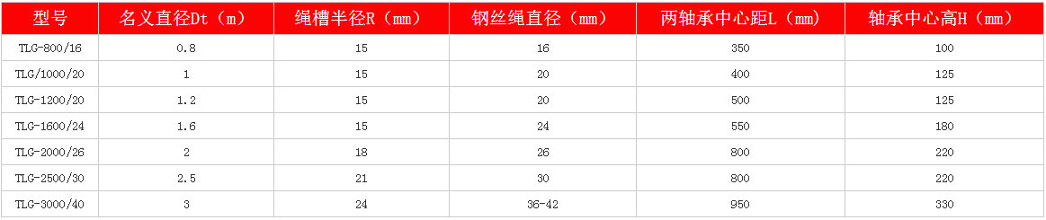 鑿井懸吊天輪是按JZ系列鑿井絞車鋼絲繩最大靜張力分別為5t(50kN),10t(100kN),16t(160kN),25t(250kN),40t(400kN)進(jìn)行配套設(shè)計(jì)的。