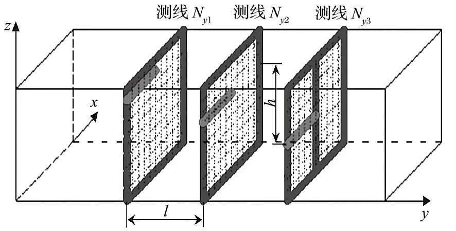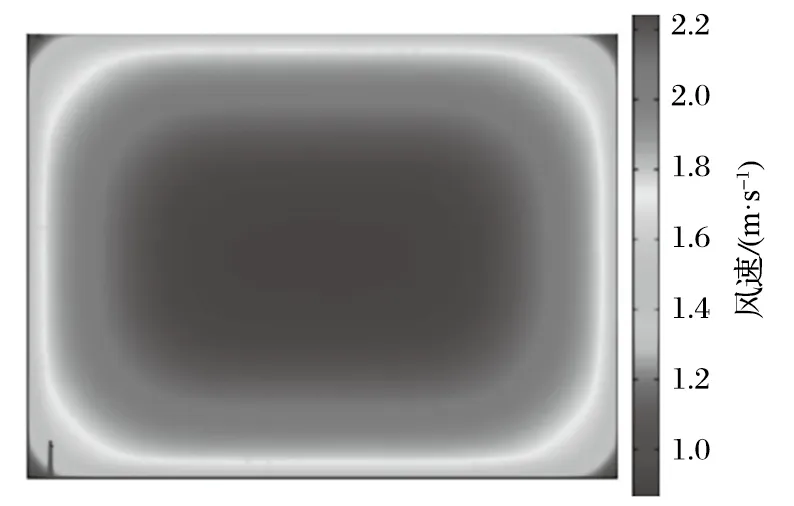 由于井下各點(diǎn)巷道過風(fēng)斷面大小不一、巷道表面平整度造成的風(fēng)阻大小不一等客觀現(xiàn)象,導(dǎo)致風(fēng)速監(jiān)測時(shí)常出現(xiàn)精度誤差。因此,通過改變布點(diǎn)方式,采取階梯網(wǎng)格方式實(shí)現(xiàn)密集布點(diǎn),將原有斷面進(jìn)行切割細(xì)分,然后分析斷面內(nèi)的風(fēng)流風(fēng)速分布規(guī)律,從而得出相對準(zhǔn)確的平均風(fēng)速在斷面內(nèi)的實(shí)際位置。經(jīng)過優(yōu)化后,將風(fēng)速傳感器進(jìn)行定點(diǎn)安裝,以此提升風(fēng)速采集的準(zhǔn)確性。階梯網(wǎng)格方式分析風(fēng)速分布規(guī)律如圖1 所示,矩形斷面實(shí)測風(fēng)速分布如圖2 所示。