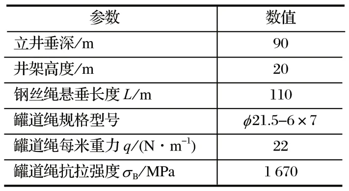 試驗項目二用于振興二礦主井罐道繩,其參數如表3 所列。