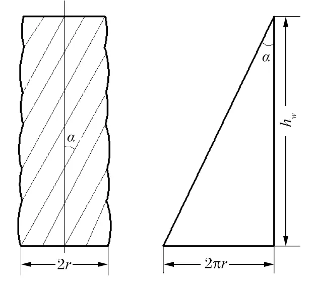 在實際運行過程中,提升鋼絲繩張力zui大的位置往往在彎曲部位。鋼絲繩展開結構如圖3 所示。模擬真實工況下采用防過卷裝置后鋼絲繩的纏繞工況,繩股纏繞在天輪上,鋼絲繩處于純彎曲的狀態。