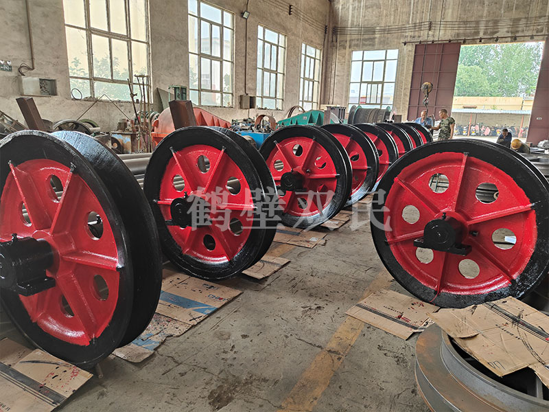 鑿井懸吊天輪是按JZ系列鑿井絞車鋼絲繩最大靜張力分別為5t(50kN),10t(100kN),16t(160kN),25t(250kN),40t(400kN)進行配套設計的。