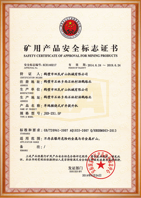 礦用產(chǎn)品安全標(biāo)志證書(shū)